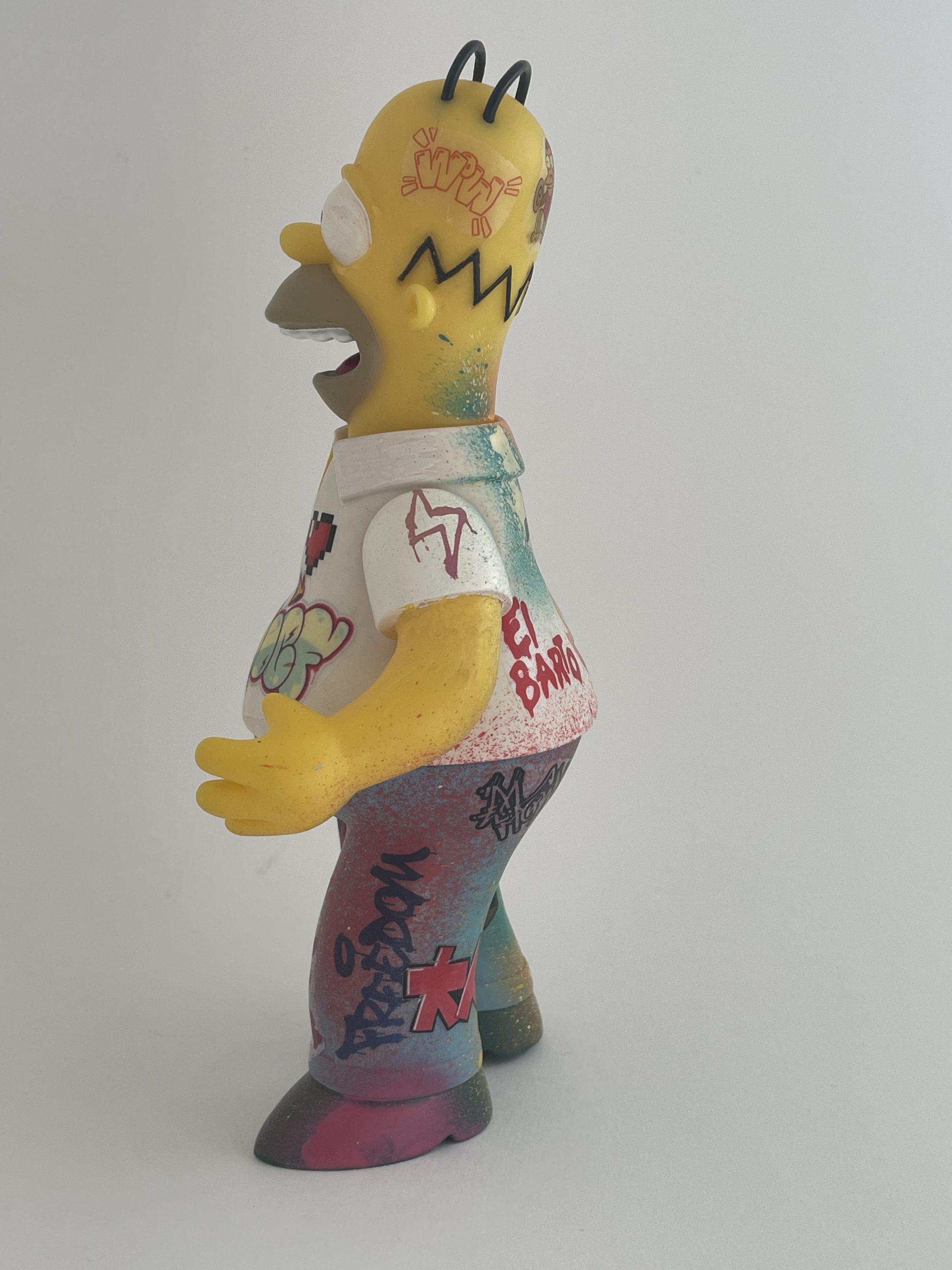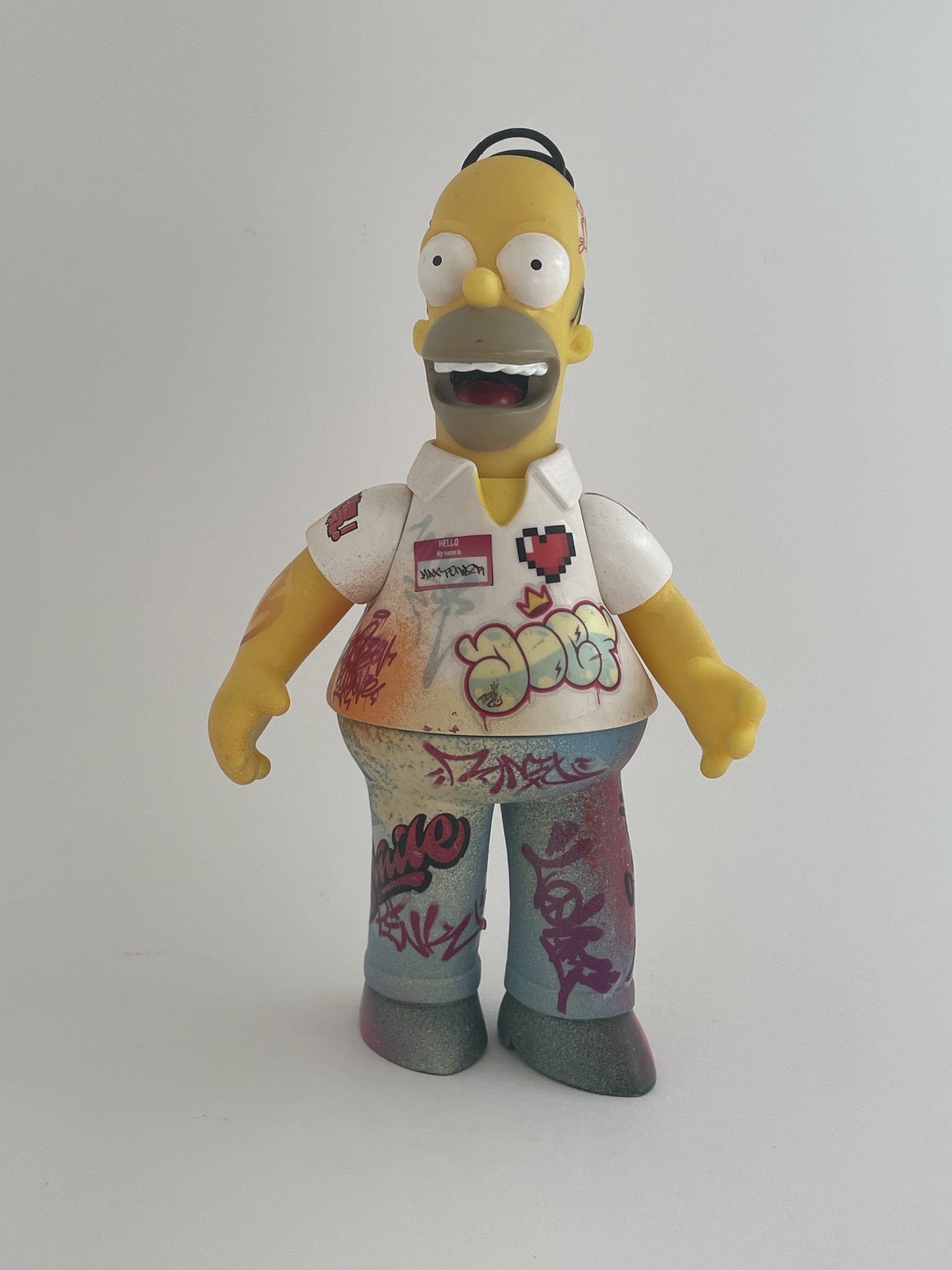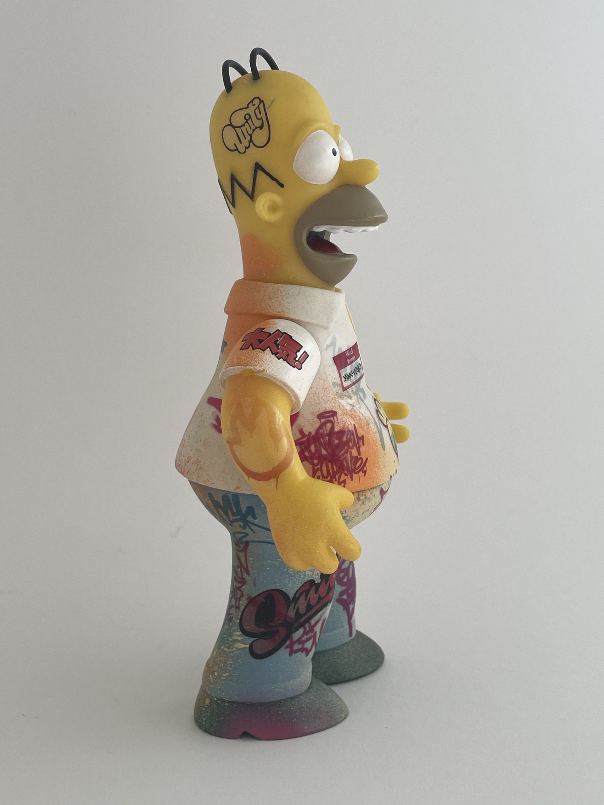This hand-finished Homer Simpson figurine is reworked with spray paint and graffiti much of it inspired by the humour of the beloved TV show.